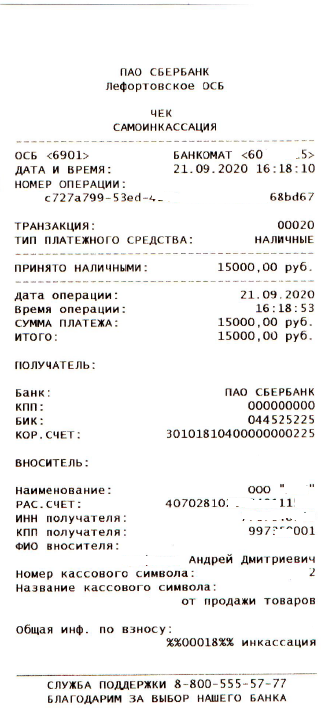 Выберите расчётный счёт, внесите наличные и получите чек. Устройство зачислит деньги на расчётный счёт в режиме онлайн