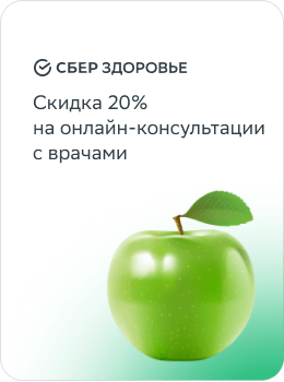 «СберЗдоровье» (18+), ООО «Инновационная Медицина», ОГРН 1197746310618, юридический адрес: 105203, г. Москва, ул. Нижняя Первомайская, д. 44, этаж цоколь, пом./ком. XII/8, 9. Лицензия ИМ (ЛО-77-01-019313 выдана 19.12.2019) с привлечением иных медицинских организаций. ИМЕЮТСЯ ПРОТИВОПОКАЗАНИЯ, НЕОБХОДИМО ПРОКОНСУЛЬТИРОВАТЬСЯ СО СПЕЦИАЛИСТОМ. Скидка 20% предоставляется на медицинские консультации с применением телемедицинских технологий. Предложение партнера доступно в рамках подписки на срок не более 12 месяцев с момента оформления Подписки. Ссылка на пользовательское