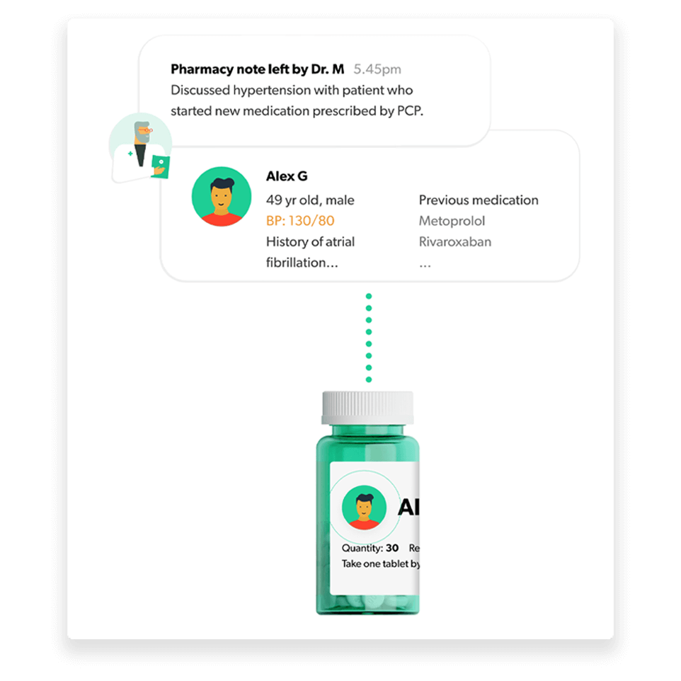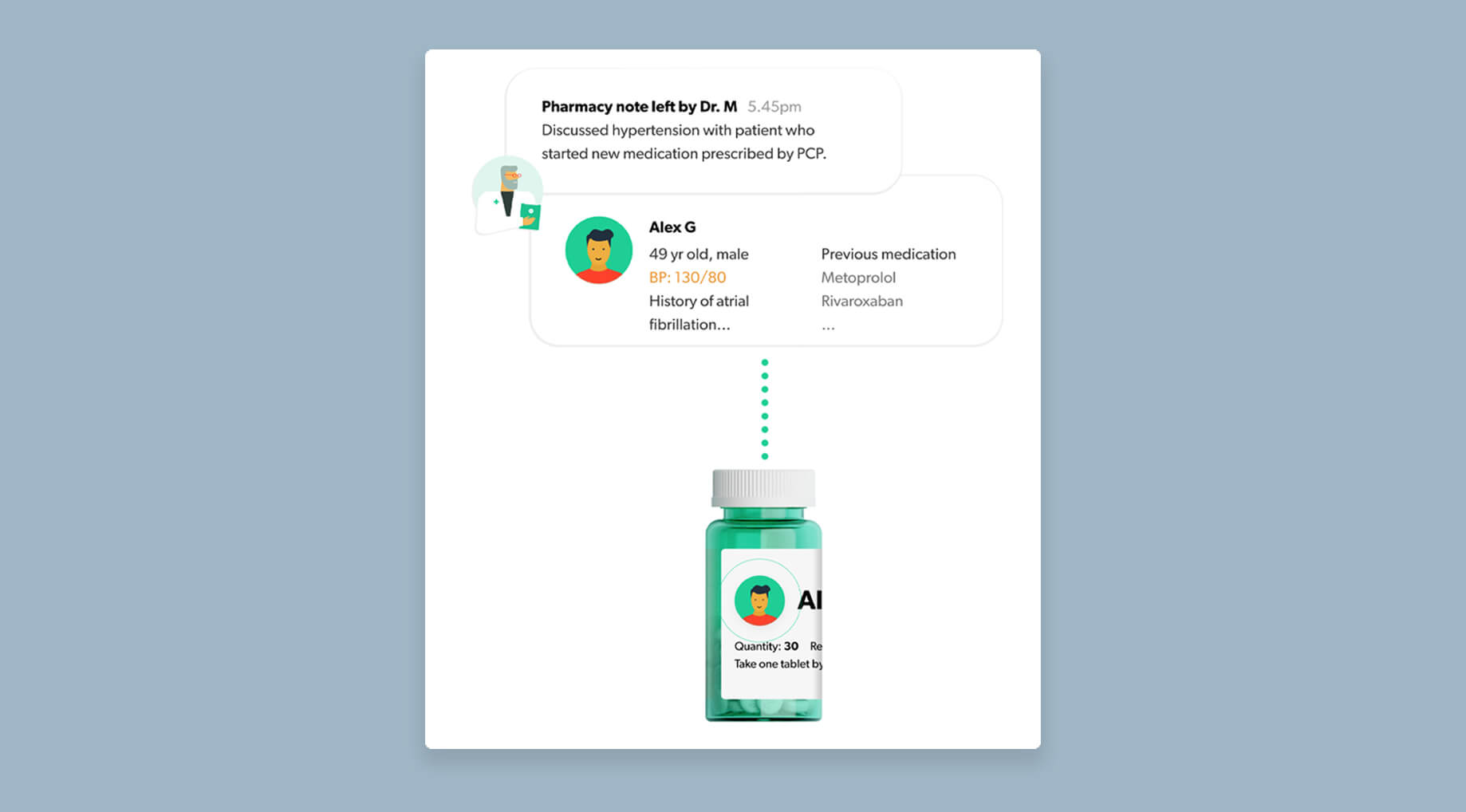 С помощью Ro аптеки могут связываться напрямую с врачами: на примере выше получено сообщение от доктора с назначением препарата от гипертонии. Данные пациента: мужчина 49 лет, давление 130 на 80. Источник: ro.co
