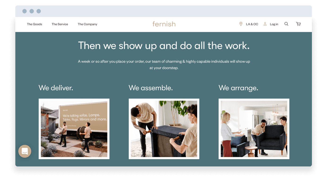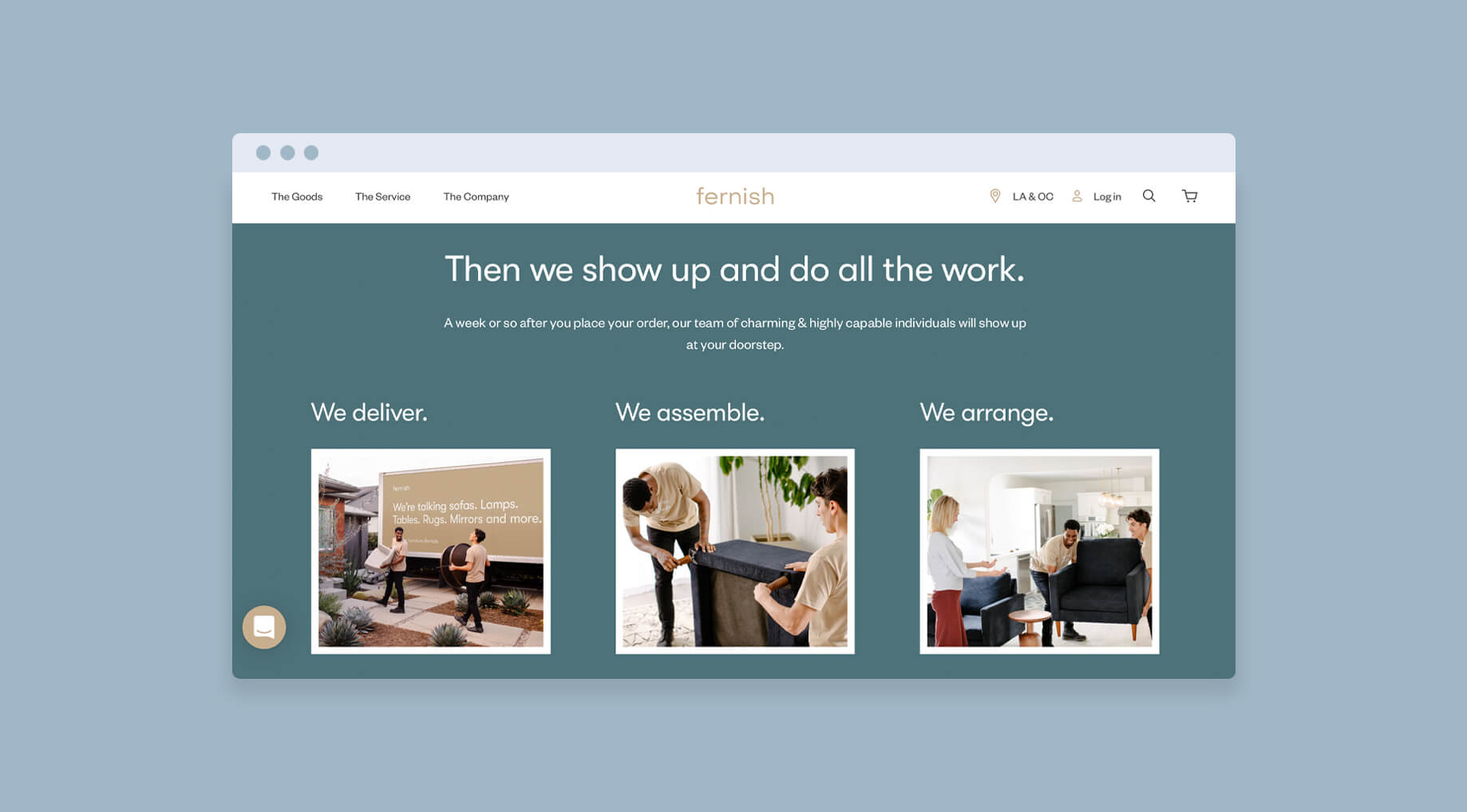 Вы заказываете мебель, через неделю специалисты Fernish её привозят, собирают и при необходимости помогают сделать перестановку. Источник: fernish.com