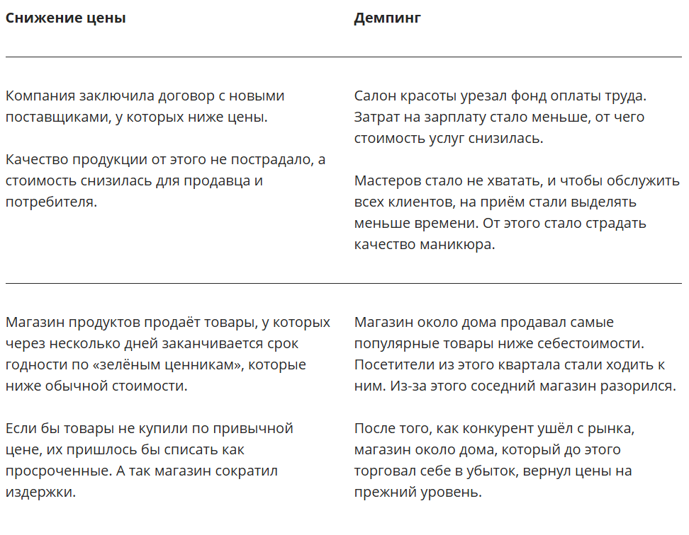 Практика может нанести вред не только конкурентам, но и самой компании, которая демпингует.