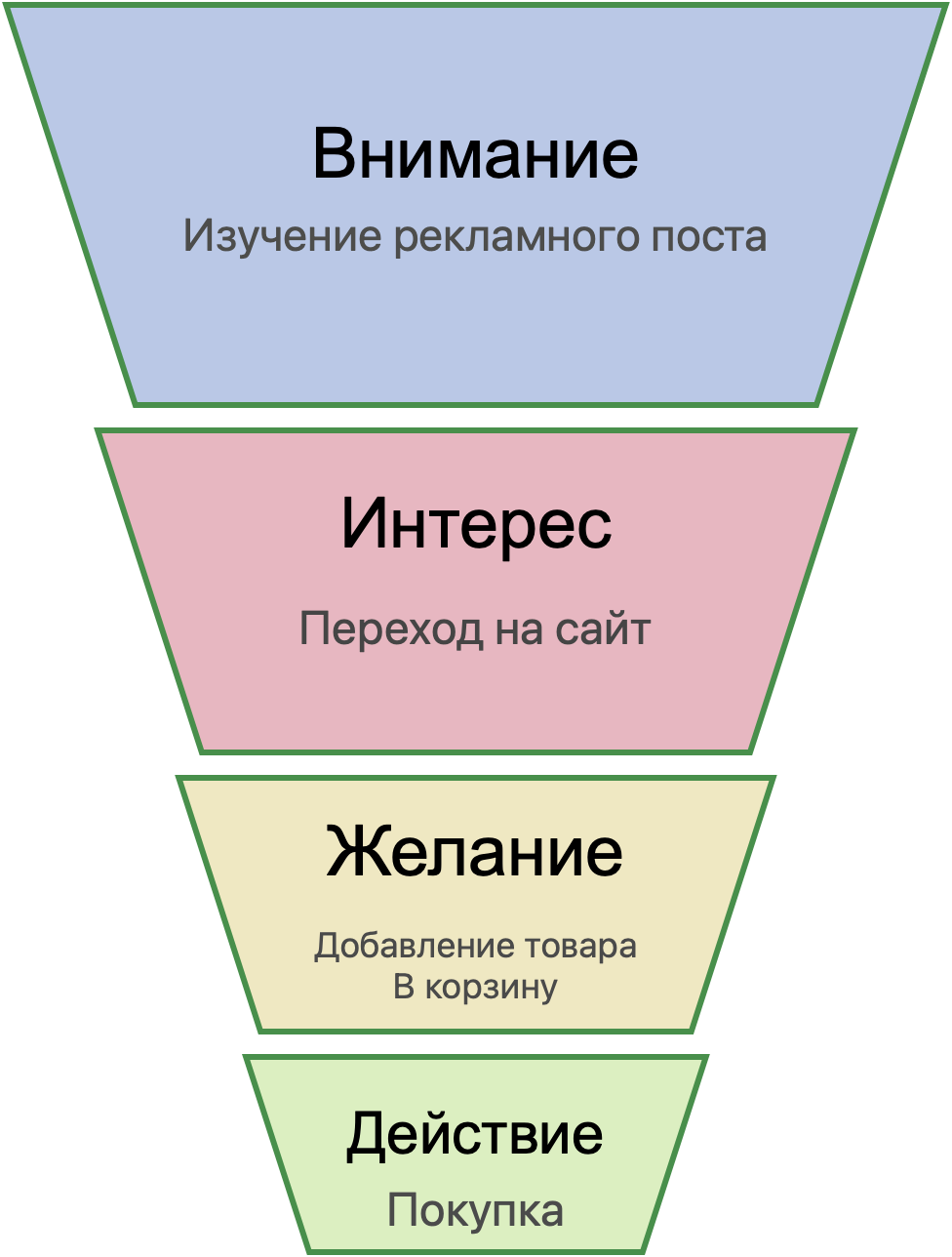 Один из вариантов воронки привлечения и продаж: от узнавания о продукте до совершения целевого действия