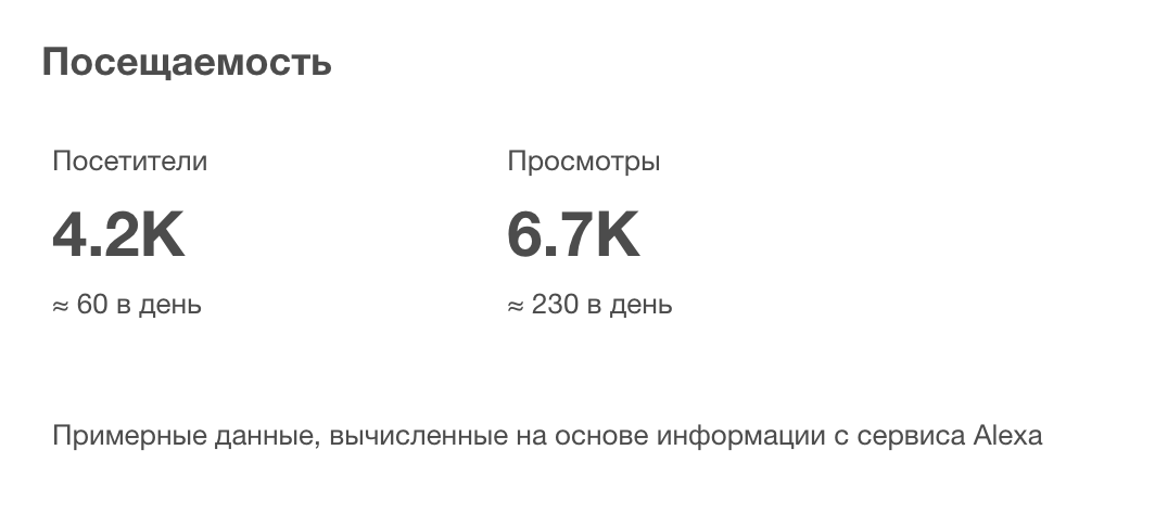 Сервис pr-cy показывает среднее количество посетителей сайта за день в определённом периоде