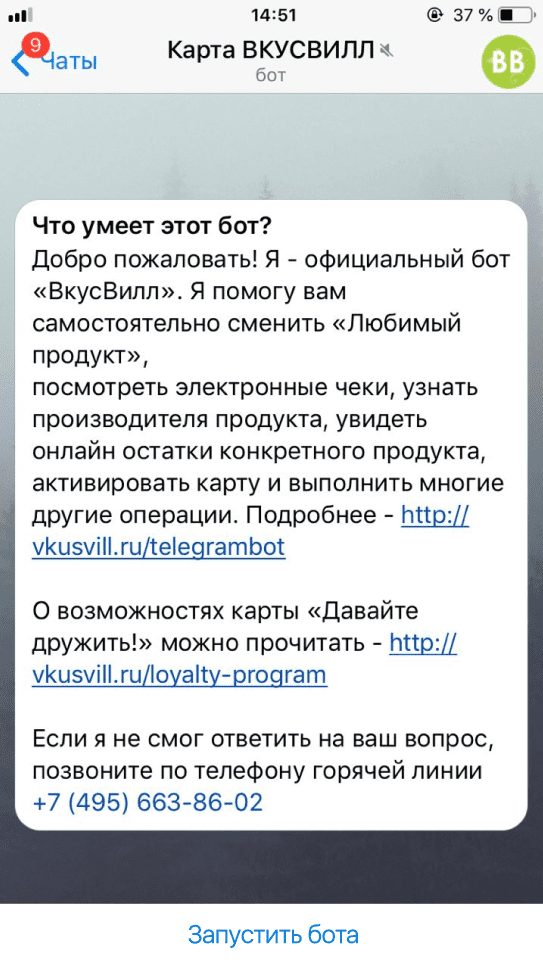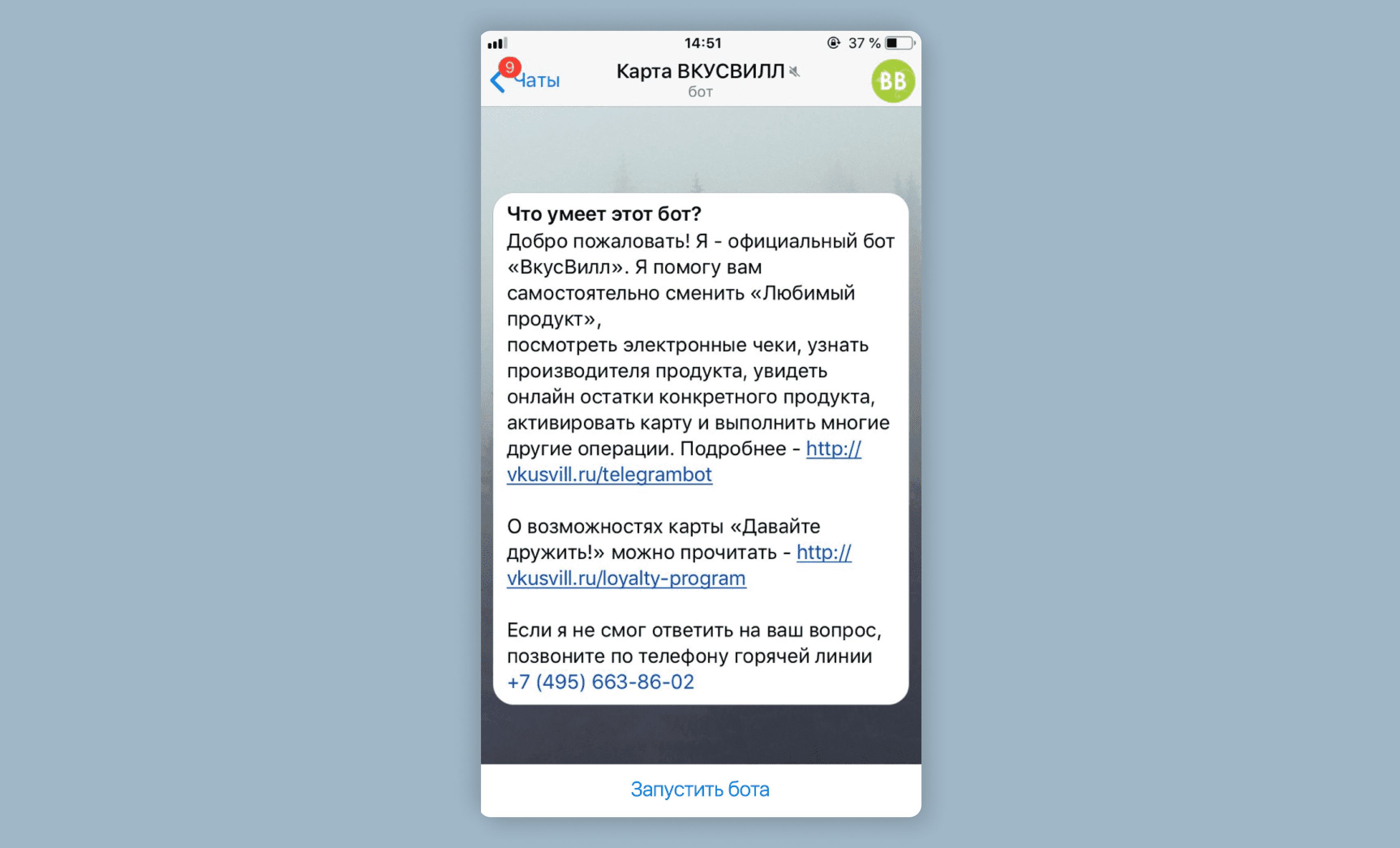 Например, чат-бот компании «МТС» ежедневно обрабатывает до 70 тысяч диалогов и может поддерживать до 100 переписок одновременно. А чат-бот ВкусВилла умеет подбирать рецепты, блюда и оценивать качество продуктов.