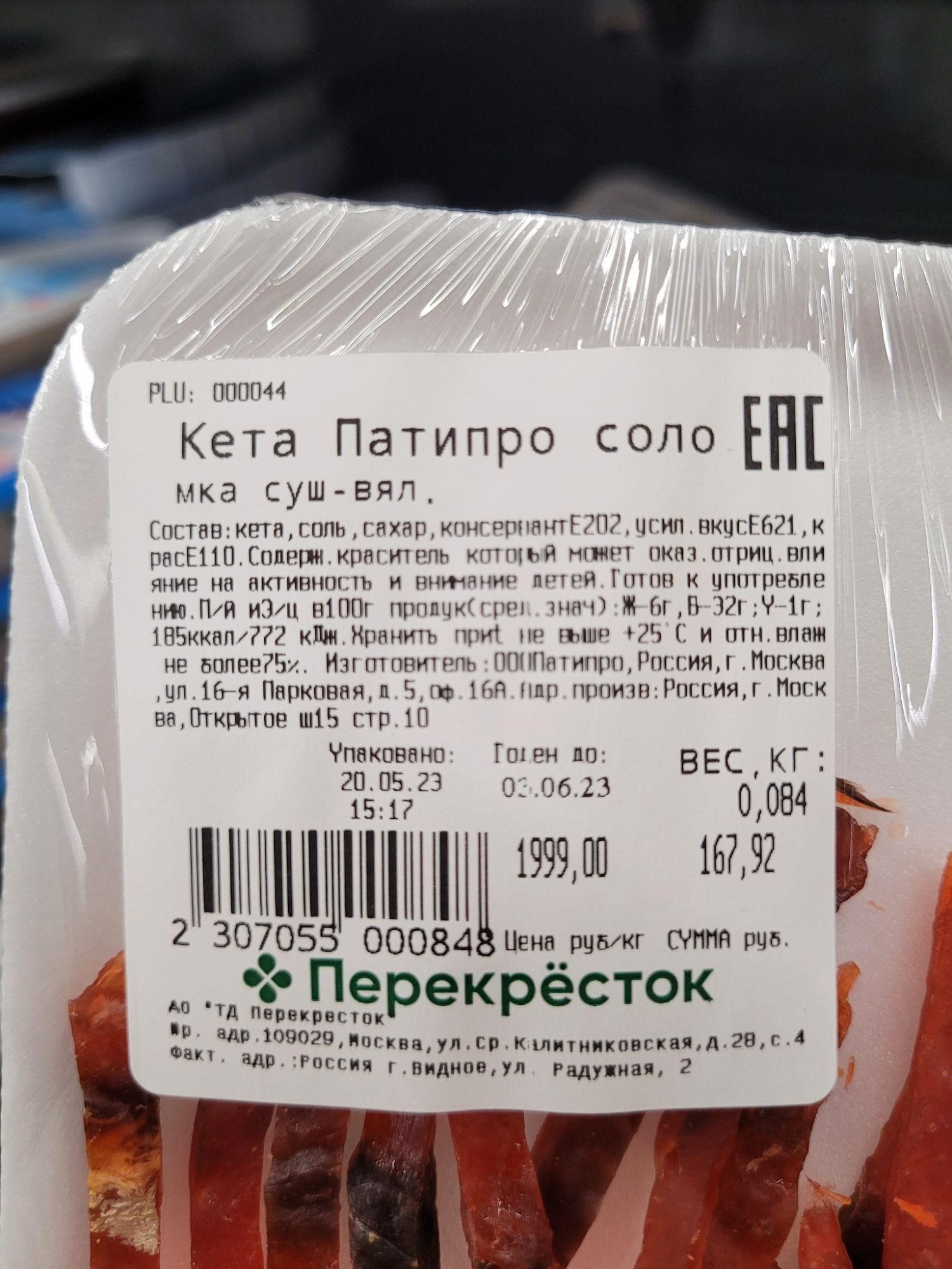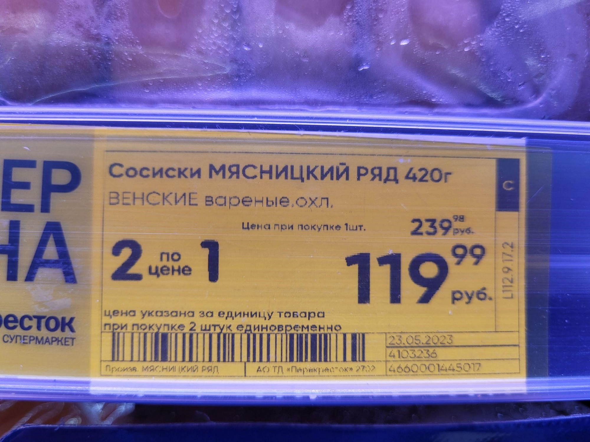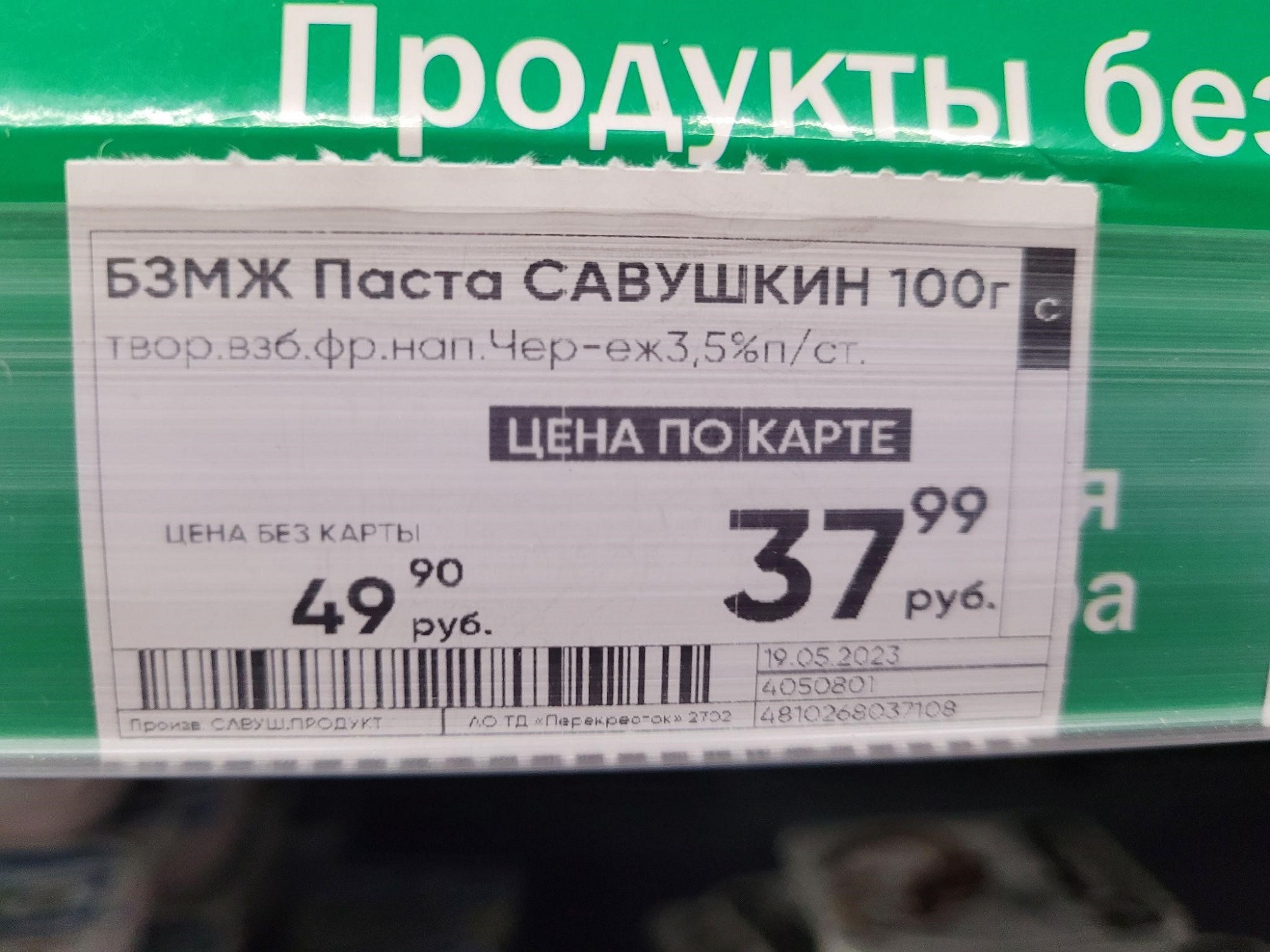 Пример правильного оформления ценника: на нём есть цена, название товара, вес. Дополнительно указана дата фасовки, производитель и штрихкод, по которому товар пробьют на кассе