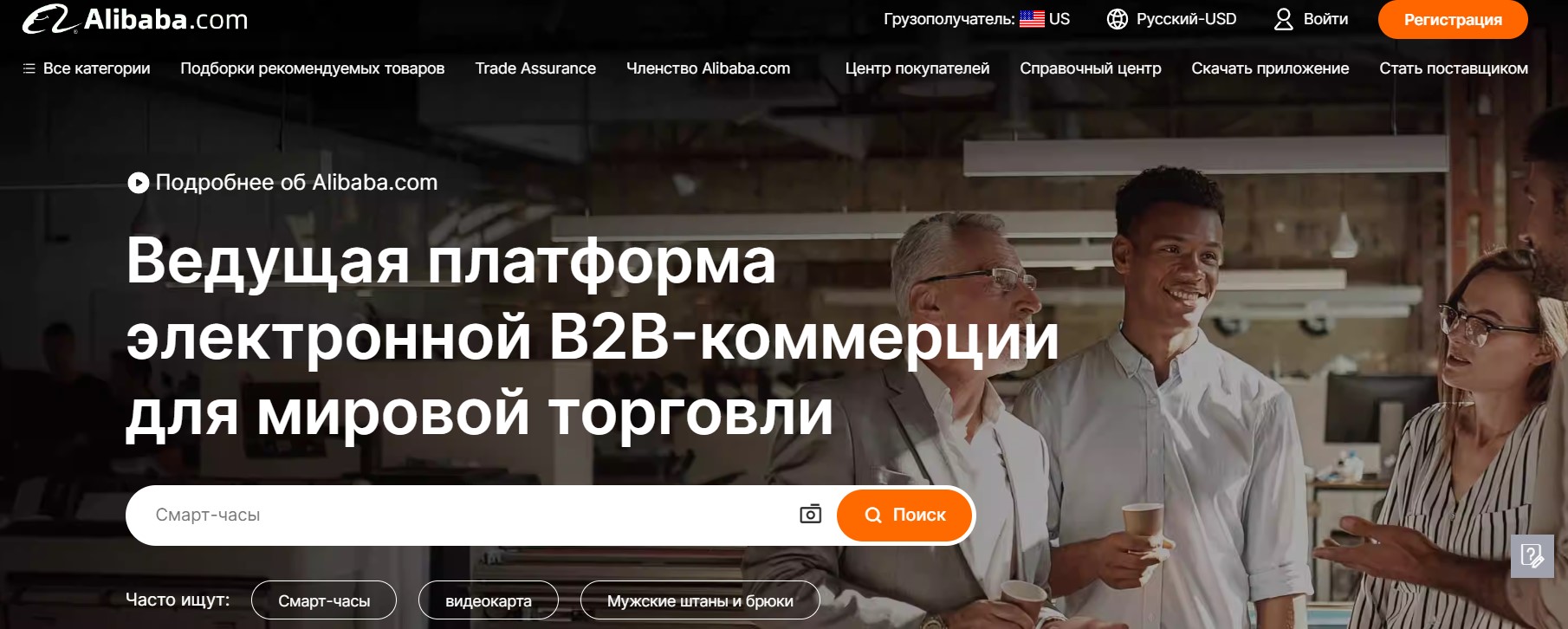 Alibaba.com — это онлайн-площадка, на которой китайские производители и агенты продают оптовые партии товаров предпринимателям из других стран. Сайт похож на AliExpress стилем и функционалом: у него есть поиск по товарам, фильтры и рубрикатор по категориям.