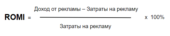ROMI показывает, приносят ли выгоду все рекламные инструменты, которые использует бизнес, эффективно ли расходуется рекламный бюджет в целом. Формула: ROMI = (Доход от рекламы – Затраты на рекламу) / Затраты на рекламу х 100%.