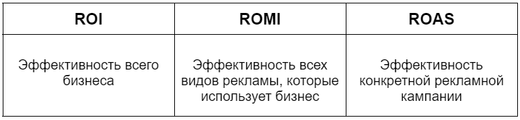 Основные отличия ROI, ROMI, ROAS