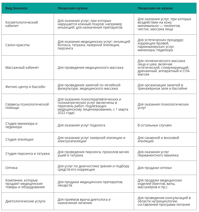 Некоторый бизнес имеет косвенное отношение к здоровью человека, например, студии эпиляции или фитнес-центры. Получать им лицензию или нет ― зависит от перечня услуг.