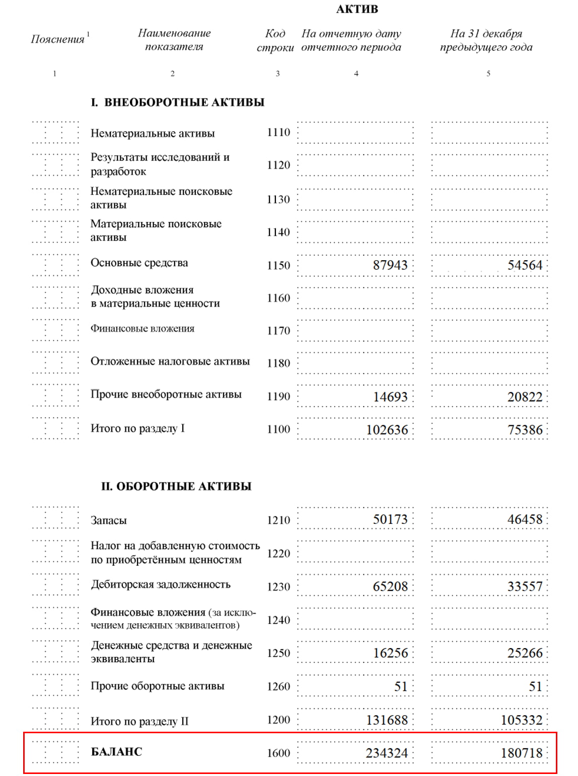 Пример отражения активов в бухгалтерской отчётности