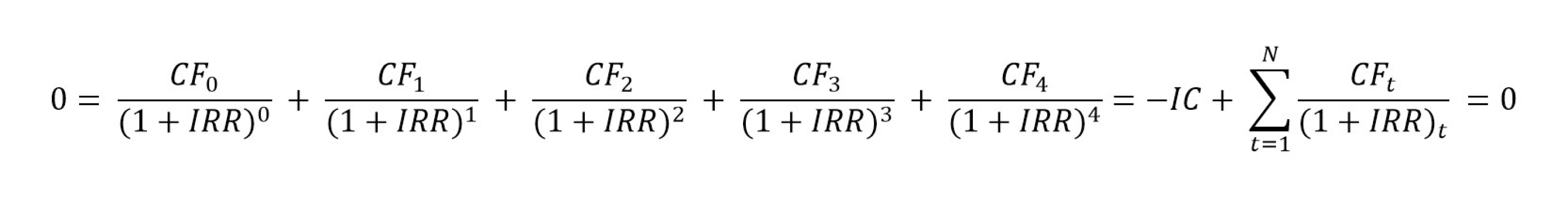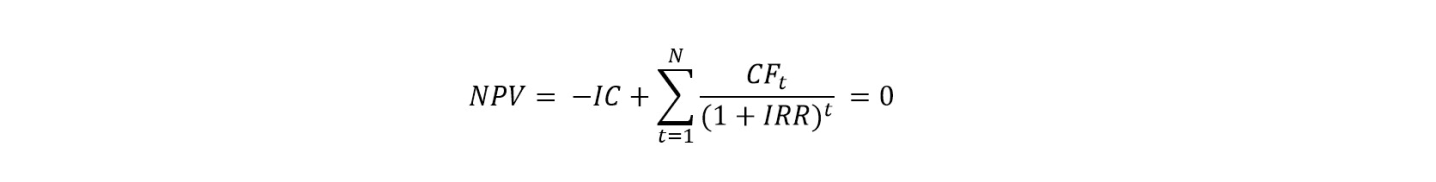 Для расчёта нормы доходности используют формулу с известным NPV, равным нулю: