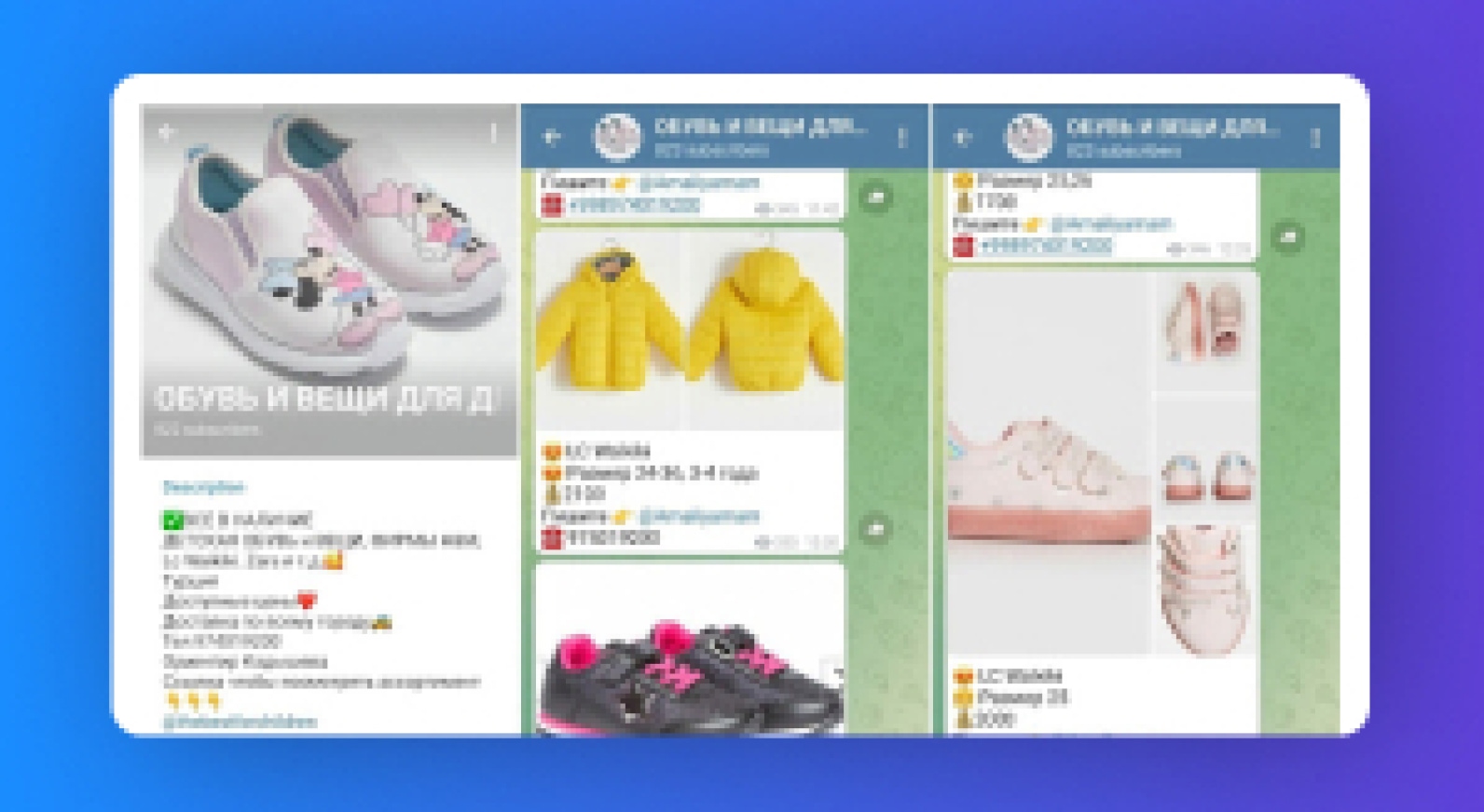 Так выглядит один из каналов магазина детских товаров в Telegram. Источник: канал «Обувь и вещи для детей»